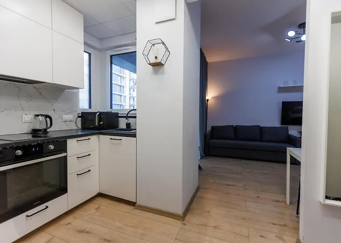 Das 2-237 Bliska Wola Tower, Marcina Kasprzaka 29, Warsaw, City View, Petrovdom Apartment verfügt über eine komplette Küche, in der die Gäste ihre eigenen Mahlzeiten zubereiten können. Die Unterkunft befindet sich nicht weit entfernt von der U-Bahn-Station Plocka.